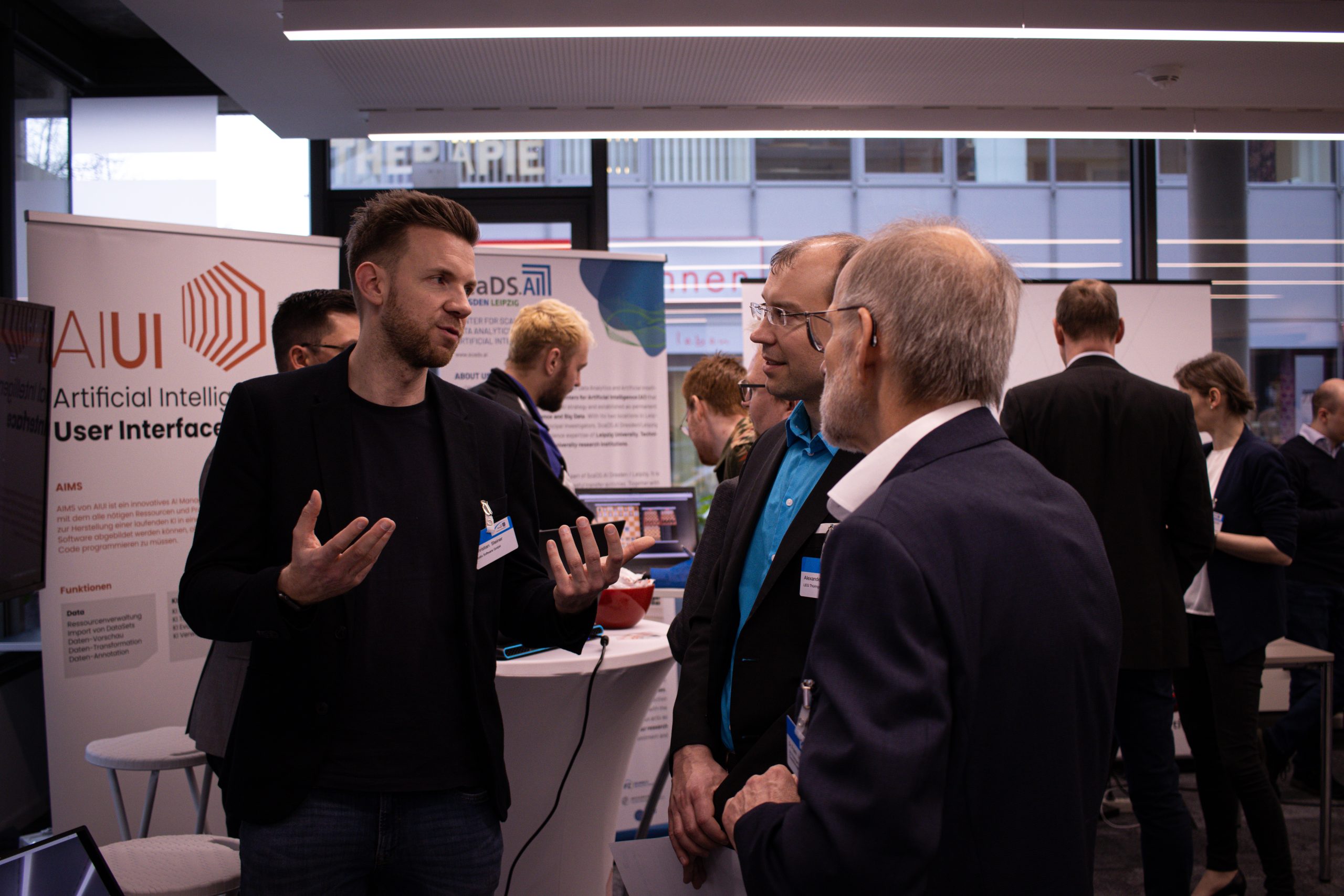 Im Anschluss konnten Besuchende den Showroom mit diversen Demonstratoren und Ausstellungen verschiedener Unternehmen mit KI-Schwerpunkt besuchen und sich austauschen.