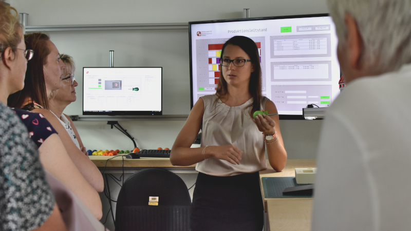 Die Mitarbeiter der Thüringer Energie AG (TEAG) aus den Bereichen Ausbildung, Personalentwicklung und Weiterbildung informierten sich in den Modellfabriken Vernetzung und Migration über die Digitalisierung in der Bildung. Spannende Diskussionen über Sinn und praktische Anwendung von neuen Technologien in der Aus- und Weiterbildung entstanden. Mit Experten aus den Modellfabriken des Mittelstand 4.0-Kompetenzzentrums Ilmenau wurden Erfahrungen ausgetauscht und Fragen geklärt.
