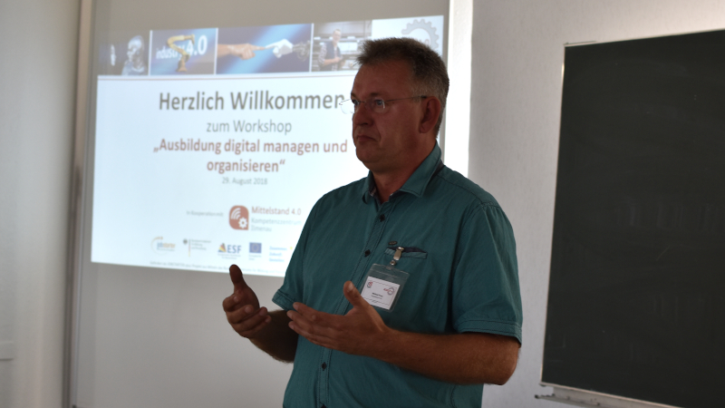 Die Institution „Ausbildung“ muss mit der Zeit gehen. Digitalisierung ist die Antwort. Am 29.08.2018 fand an der VHS Gotha ein Workshop zum Thema „Ausbildung digital managen und organisieren“ statt. Bereits zur Begrüßung sprach Michael Pruss über eigene Erfahrungen im Umgang mit den Jugendlichen. In seinem Unterricht sei das Benutzen von Smartphones ausdrücklich erlaubt. Wichtig sei jedoch, die Regeln für den Umgang mit neuen Medien von Beginn an eindeutig zu kommunizieren. Klar dürfen die Schüler mal schnell einen Anruf annehmen. Aber nur, wenn sie zügig und ohne andere zu stören den Raum zum Telefonieren verlassen.