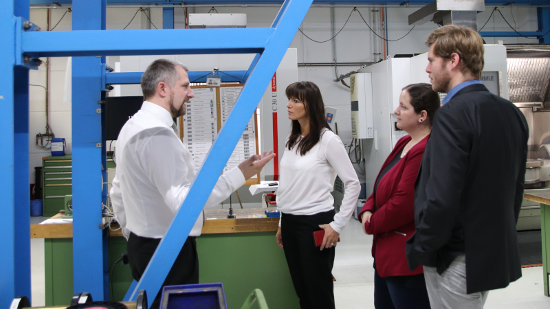 Beim Rundgang durch die Modellfabrik Prozessdaten wurden dem Projektträger die neuesten Demonstratoren vorgeführt. Interessierte KMU können sich in der Modellfabrik beispielsweise anschauen, wie Werkzeuge mittels einfacher RFID-Tags identifiziert und überwacht werden können oder wie die In-Prozess-Qualitätssicherung in der Zerspanung durch einfache Sensorik den Zerspanprozess effizienter und qualitativ hochwertiger gestalten kann.