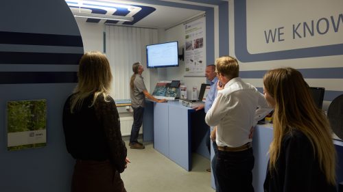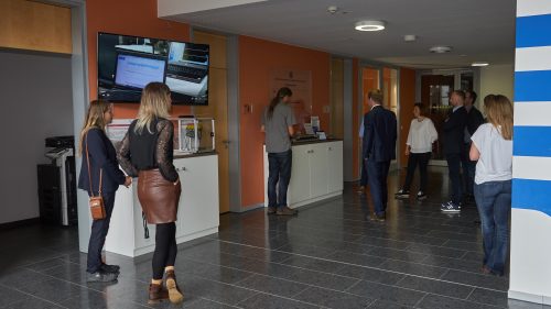 Nach der Vorstellung der Demonstratoren im Newtonbau der TU Ilmenau wurden den Gästen Demonstratoren der Modellfabrik Smarte Sensorsysteme in der Institut für Mikroelektronik- und Mechatronik-Systeme gemeinnützige GmbH (IMMS GmbH) vorgestellt. Frank Spiller und Wolfram Kattanek stellten u.a. einen Demonstrator vor, mit dessen Hilfe man Leckagen an Luftdruckanlagen frühzeitig erkennen kann.