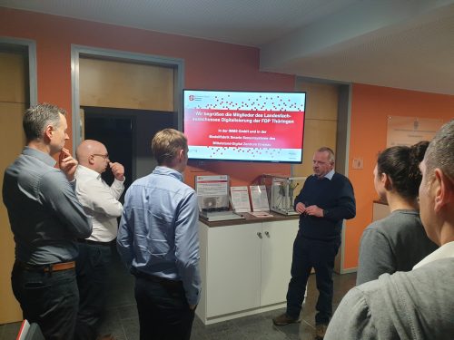 Um mehr über die Digitalisierungsangebote für kleine und mittlere Unternehmen in Thüringen zu erfahren, besichtigten Thomas Kemmerich, Landesvorsitzender der FDP Thüringen sowie Mitglieder des Landesfachausschusses Digitalisierung der FDP Thüringen die beiden Ilmenauer Modellfabriken des Mittelstand-Digital Zentrums.