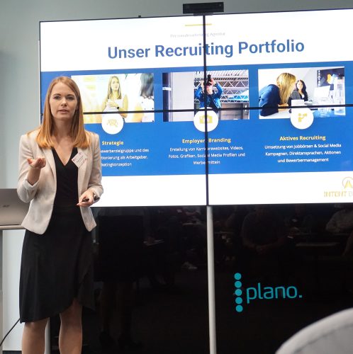 Eröffnet wurde die Veranstaltung durch Eyleen Sinnhöfer von Intent Brands. Sie führte die Teilnehmenden in die Welt des E-Recruiting ein und zeigte, wie digitale Strategien dazu beitragen können, die besten Talente anzuziehen und zu binden. Sie betonte die Bedeutung einer klaren Unternehmenskultur und einer authentischen Präsenz in den digitalen Medien. Außerdem zeigte sie Potenziale und Grenzen von digitalem Personalmarketing.