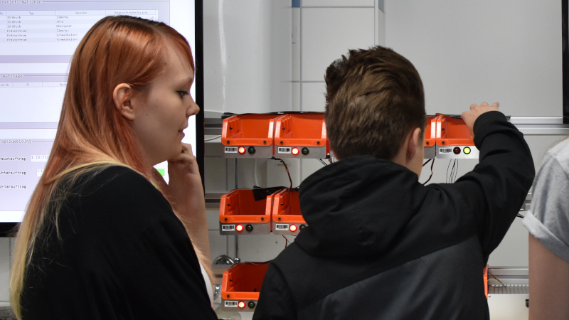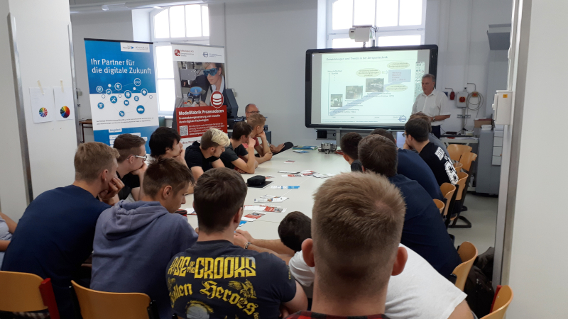 Die Schüler konnten unter anderem Design Thinking Methoden anwenden, additive Fertigung erleben und den Demonstrator zur kooperativen Wertschöpfung der Modellfabrik Vernetzung ausprobieren.