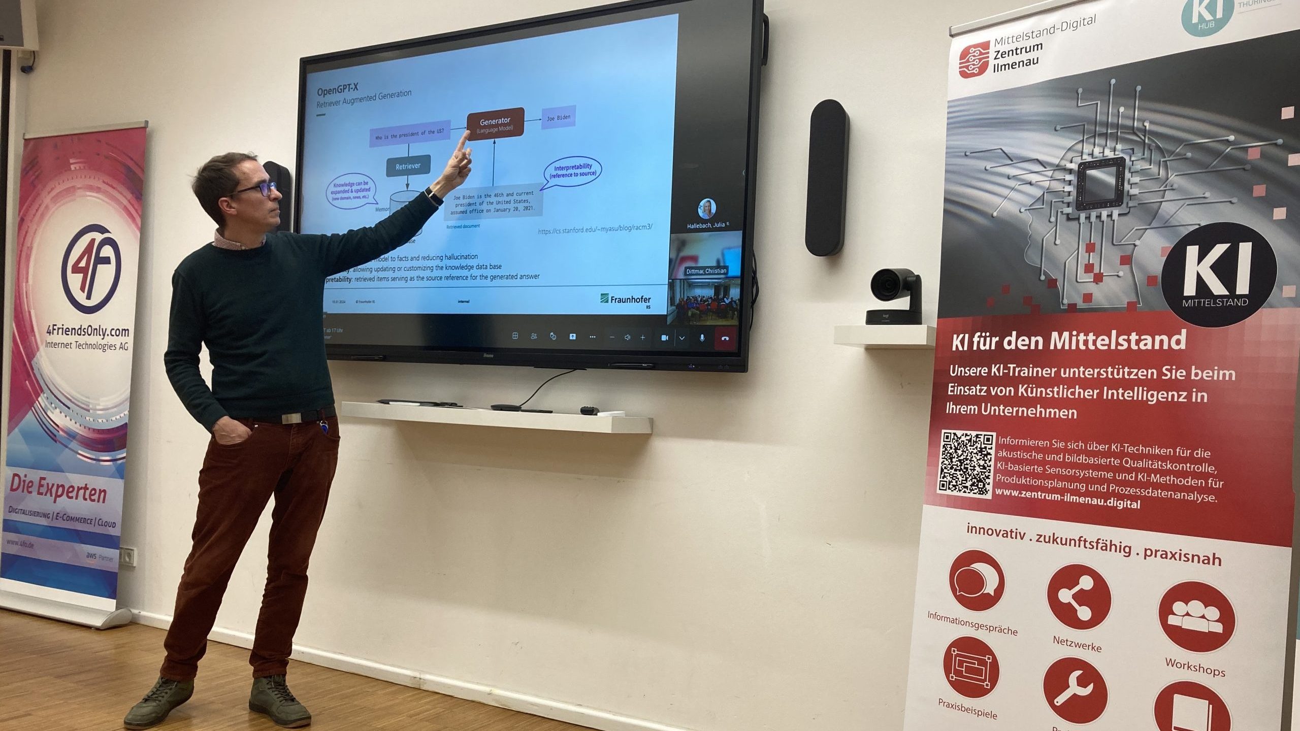 Am 16. Januar 2024 fand in Ilmenau ein weiterer KI-Stammtisch statt. Die erste Ausgabe des KI-Stammtischs im Jahr 2024 wurde als Präsenzveranstaltung in Kooperation mit der AWS User Group Ilmenau und der ELMUG Fachgruppe KI im Fraunhofer-Institut für Digitale Medientechnologie IDMT in Ilmenau durchgeführt und zog 36 Teilnehmende an. Die Veranstaltung bot eine Plattform für Experten und Interessierte, um sich über die neuesten Entwicklungen im Bereich der künstlichen Intelligenz auszutauschen, neue Kontakte zu knüpfen und Demonstratoren vor Ort zu besichtigen.