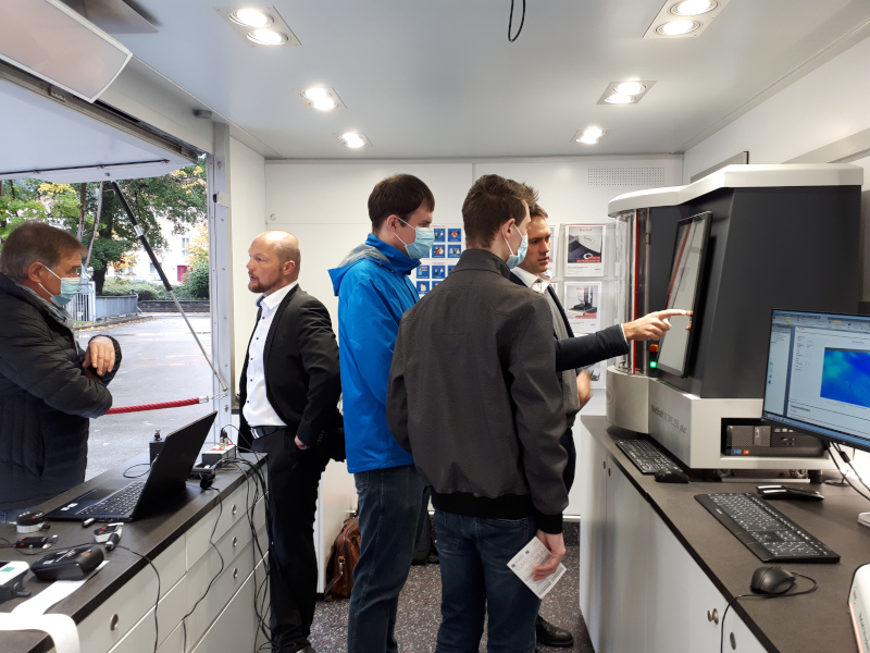 Am 9. Oktober 2020 besuchten verschiedene Unternehmen Südthüringens aus den Branchen Automobilzulieferindustrie und Maschinenbau die Modellfabrik Prozessdaten um sich im Showtruck der Mahr GmbH über neuste aufgabenoptimierte und flexible Messverfahren für die Qualitätssicherung zu informieren. In Live-Demonstrationen wurden optische und taktile Messsysteme vorgeführt und die interessierten Unternehmen konnten diese mit eigenen Messaufgaben für ihre Produkte erproben. So konnten optische Messsysteme, verschiedene Rauheitsmessverfahren, Messmikroskope sowie Handmesstechnik in Augenschein genommen. Mit den Experten der Mahr GmbH sowie der Modellfabrik Prozessdaten des Mittelstand 4.0-Kompetenzzentrums Ilmenau konnten Möglichkeiten für die Integration in das eigene Fertigungsumfeld diskutiert werden.