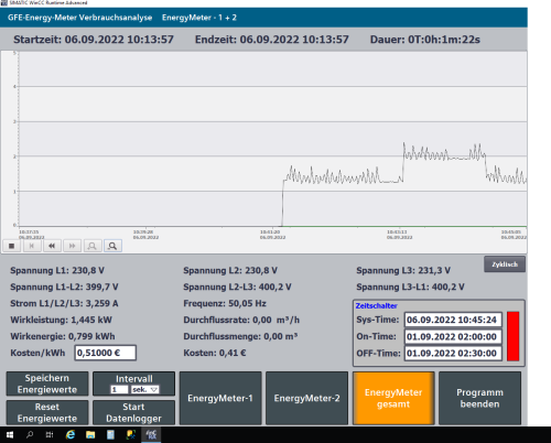 Die Modellfabrik Prozessdaten hat zu diesem Zweck ein „Mobiles Energie-Monitoring-System“ (EnergyMeter) entwickelt, welches in Abhängigkeit des Einsatzverhaltens der angeschlossenen Anlage / des angeschlossenen Prozesses in der Lage ist, verschiedene elektrische Kenngrößen (Strom, Spannung, Frequenz) im zeitlichen Verlauf aufzuzeichnen und zu visualisieren. Aus diesen Kenngrößen werden mit einer integrierten Recheneinheit (CPU) Größen wie Scheinleistung, Wirkleistung, Blindleistung, Leistungsfaktor, Wirkarbeit und Blindarbeit errechnet. Mit diesen errechneten Größen und dem zugehörigen zeitlichen Monitoring des Prozesses können Rückschlüsse auf einzelne Fertigungsschritte und -operationen bis hin zur Analyse der Effizienz des Gesamtprozesses vorgenommen werden.