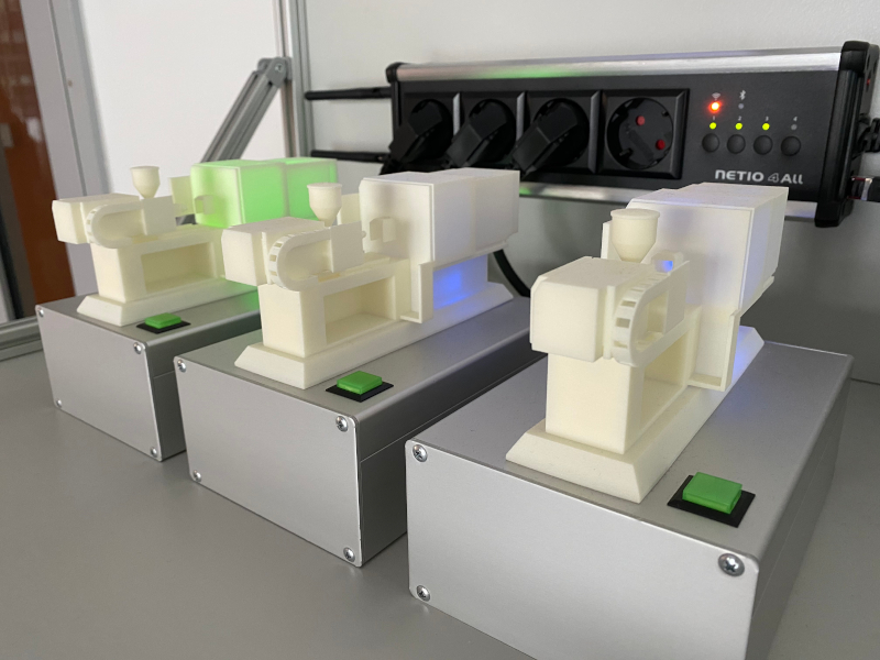 Der Demonstrator der Modellfabrik Migration zeigt die Möglichkeit des priorisierten, fertigungsplangesteuerten Hochfahrens von Maschinen zur Vermeidung von Lastspitzen.