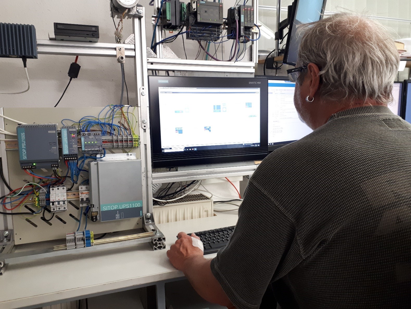 Das System verfügt neben einem Industrie-PC, verschiedenen Steuerungselementen und Sensoren sowie Aktoren über eine Entwicklungsumgebung zur Konzeptionierung um Umsetzung von Softwaremodulen und Benutzeroberflächen.