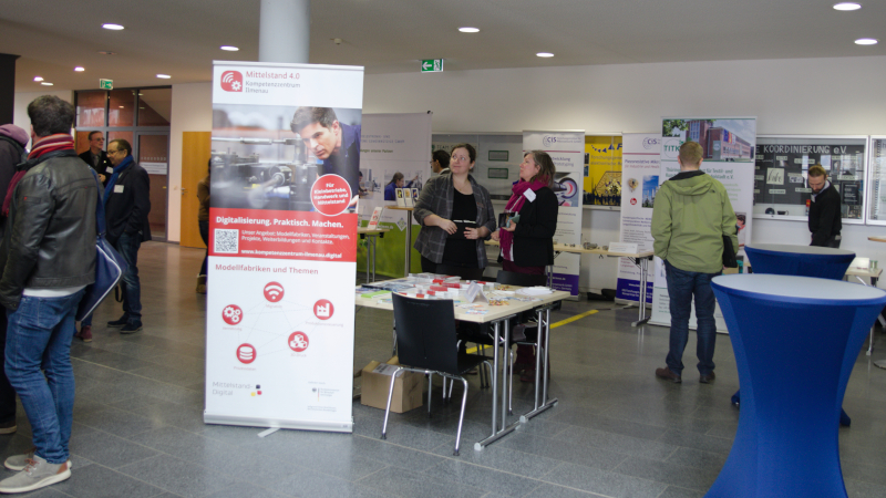 Das galt freilich auch für den Transfertag. Auf der kleinen Hausmesse präsentierten sich studentische Vereine, Multiplikatoren und die An-Institute der Technischen Universität. KMU und interessierte Besucher hatten so die Möglichkeit, auf einfachstem Wege neue Kontakte zu knüpfen. Auch das Mittelstand 4.0-Kompetenzzentrum Ilmenau war mit einem Stand vertreten.