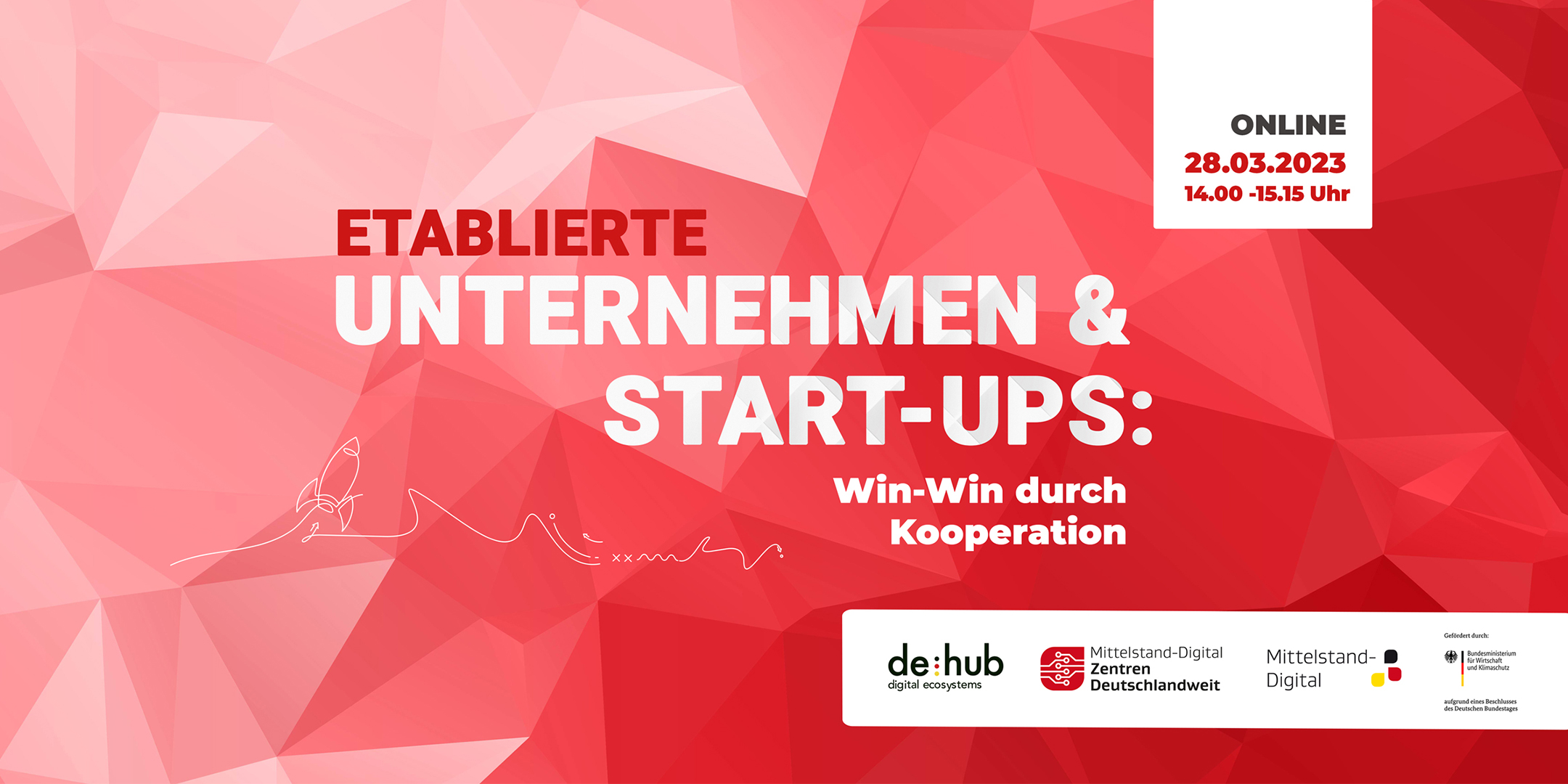 Unternehmen lernen am besten von anderen Unternehmen! Aber wie können Start-ups und insbesondere kleine & mittlere Unternehmen und voneinander profitieren? Welche Vorteile und Herausforderungen haben solche Kooperationen? Diesen und weiteren Fragen widmen sich unsere Gäste in der Online-Veranstaltung „Etablierte Unternehmen & Start-Ups: Win-Win durch Kooperation“, am 28. März 2023 in der Zeit von 14.00 bis 15:15 Uhr. Neben praxisnahen Einblicken und Umsetzungsmöglichkeiten, zeigen sie das Potenzial und mögliche Synergieeffekte dieser Vernetzung auf!