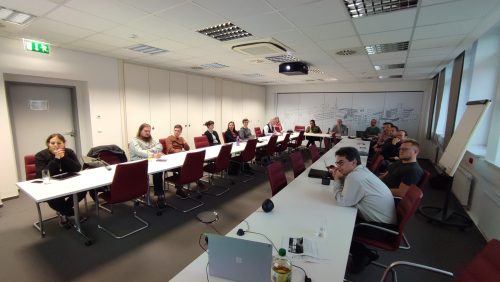 Im Fokus der Veranstaltung stand die Frage, wie KI bestehende Geschäftsmodelle aufgreift und neue ermöglicht. Karsten Jahn vom Mittelstand-Digital Zentrum Ilmenau führte in das Thema Künstliche Intelligenz ein. Jonas Brozeit vom Mittelstand-Digital Zentrum Kaiserslautern besprach Chancen und Risiken zur Einführung von KI und ging anhand von konkreten Lösungen und Fallbeispielen auf die KI-Readiness in Unternehmen ein. Dirk Schmalzried vom Zentrum für Angewandte Künstliche Intelligenz gab einen Überblick über den aktuellen Stand zum Einsatz von KI in deutschen Unternehmen sowie über Prognosen für sich durch KI verändernde Branchen und Berufsfelder. In der angeschlossenen Fragerunde diskutierten die 19 Teilnehmenden über starke KI, Datenhaltung als Hemmnis zur Einführung von KI und über die großen Veränderungen in den kommenden Jahren. Das besondere Interesse des Publikums an KI-Themen lässt auch in Zukunft interessante Gespräche und Diskussionsrunden erwarten.